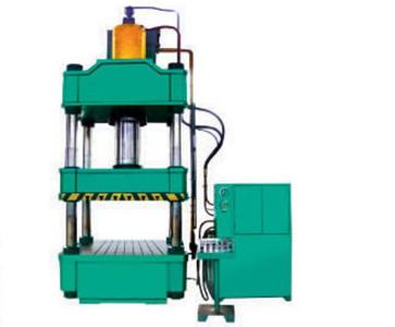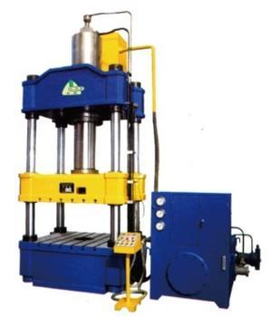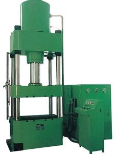 基本原理是油泵把液壓油輸送到集成插裝閥塊,通過各個單向閥和溢流閥把液壓油分配到油缸的上腔或者下腔,在高壓油的作用下,使油缸進(jìn)行運(yùn)動.液壓機(jī)是 利用液體來傳遞壓力的設(shè)備。液體在密閉的容器中傳遞壓力時是遵循帕斯卡定律。四柱液壓機(jī)的液壓傳動系統(tǒng)由動力機(jī)構(gòu)、控制機(jī)構(gòu)、執(zhí)行機(jī)構(gòu)、輔助機(jī)構(gòu)和工作介質(zhì)組成。動力機(jī)構(gòu)通常采用油泵作為動力機(jī)構(gòu),一般為積式油泵。為了滿足執(zhí)行機(jī)構(gòu)運(yùn)動速度的要求, 選用一個油泵或多個油泵。低壓(油壓小于2.5MP)用齒輪泵;中壓(油壓小于6.3MP)用葉片泵;高壓(油壓小于32.0MP)用柱塞泵。各種可塑性 材料的壓力加工和成形,如不銹鋼板鋼板的擠壓、彎曲、拉伸及金屬零件的冷壓成形,同時亦可用于粉末制品、砂輪、膠木、樹脂熱固性制品的壓制。 5工作介質(zhì) 液壓機(jī)所用的工作介質(zhì)的作用不僅是傳遞壓強(qiáng),而且保證機(jī)器工作部件工作靈敏、可靠、壽命長和泄漏少。液壓機(jī)對工作介質(zhì)的基本要求是:①有適宜的流動性和低的可壓縮性,以提高傳動的效率;②能防銹蝕;③有好的潤滑性能;④易于密封;⑤性能穩(wěn)定,長期工作而不變質(zhì)。液壓機(jī)最初用水作為工作介質(zhì),以后改用在水中加入少量乳化油而成的乳化液,以增加潤滑性和減少銹蝕。19世紀(jì)后期出現(xiàn)了以礦物油為工作介質(zhì)的油壓機(jī)。油有良好的潤滑性、防腐蝕性和適度的粘性,有利于改善液壓機(jī)的性能。20世紀(jì)下半葉出現(xiàn)了新型的水基乳化液,其乳化形態(tài)是“油包水”,而不是原來的“水包油”!坝桶比榛旱耐庀酁橛停臐櫥院头牢g性接近油,且含油量很少,不易燃燒。但水基乳化液價格較貴,限制了它的推廣。 6結(jié)構(gòu) 驅(qū)動系統(tǒng) 液壓機(jī)的驅(qū)動系統(tǒng)主要有泵直接驅(qū)動和泵-蓄能器驅(qū)動兩種型式。泵直接驅(qū)動 這種驅(qū)動 系統(tǒng)的泵向液壓缸提供高壓工作液體,配流閥用來改變供液方向,溢流閥用來調(diào)節(jié)系統(tǒng)的限定壓強(qiáng),同時起安全溢流作用。這種驅(qū)動系統(tǒng)環(huán)節(jié)少,結(jié)構(gòu)簡單,壓強(qiáng)能按所需的工作力自動增減,減少了電能消耗,但須由液壓機(jī)的最大工作力和最高工作速度來決定泵及其驅(qū)動電機(jī)的容量。這種型式的驅(qū)動系統(tǒng)多用于中小型液壓機(jī),也有用泵直接驅(qū)動的大型(如120000千牛)自由鍛造水壓機(jī)。