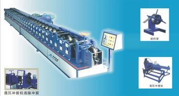 冷彎成型機(英文名稱:[1]Cold Roll Forming Machine)、鋼珠滑軌機軋輥設計制造特點: 1、各道次平均受力原則,全線滾輪平均受力,磨損均衡,延長軋輥使用壽命。 2、軋輥采用C12MoV 材料是利用其耐磨性能,但具體的強度與硬度是矛盾的,熱處理時要利用C12MoV的紅硬性,淬火后,兩次甚至三次回火才能達到硬度。 3、軌道圓弧部位是滑軌核心部位,前幾道壓成型后的圓弧位,在后道次軋折立邊時,應對已成型的圓弧,通過上下軋輥或橫輪,進行有效管束保護,不然,材料在拉伸過程中圓弧位一定會變化,R變小成為三角形,鋼珠不到底,兩點接觸產生噪音,R變大時,配合軌產生晃動,滑軌使用時軌跡模糊,受力不均,滑軌變形,縮短壽命。 4、滾壓穩定性問題,生產中經常碰到材料在滾道中左右偏擺的問題,實際上是單組滾輪受不對稱,左邊受力大,材料往右邊偏擺;右邊受力大,材料往左邊偏擺。 解結的方法是: a:(如圖)變形區中性層計算準確,變形區內用料計算準確,滾輪加工對稱度好。 冷彎成型機、滑軌機軋輥設計[2]b:不變形區域盡量不受壓(如滑軌底部),裝配時上下滾輪各區域間 隙保持一致。 c:材料咬入前,應根據前道滾壓狀態,設置引導斜口,在穩定受壓前,材料在滾內滑移平穩。 5、生產中彎曲扭曲的問題,主要是受力不平衡產生的,左右受力不平衡,左右彎曲,上下受力不平衡,產生扭曲。解決方法:設計受力均衡,加工準確,安裝調整方便。 6、滾輪加工準確度是關鍵,為此,專門制作專用工具在投影儀下,放大20倍進行檢測。 7、主傳動邊,采用滾子錐軸承,確保主軸徑向跳動在0.04MM以內外,保證主軸不會左右竄動,普通球軸承自身存在間隙,在精確傳動中不能避免軸向竄動。 其他補充 |